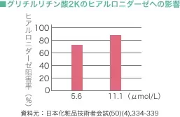 このような検証結果が明らかにされており、グリチルリチン酸2Kにヒアルロニダーゼ阻害作用が認められています。